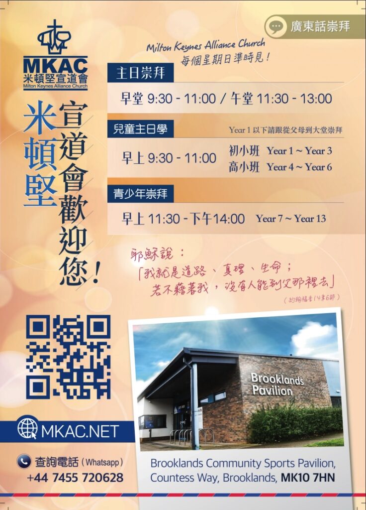 米頓堅宣道會是一所基督教華人教會 (MKAC Milton Keynes Alliance Church, a Chinese Christian Church)於2023年成立於Milton Keynes (MK),旨在將福音遍傳我們的社區。本堂隸屬《英國華人宣道聯會》成員,又屬國際基督教組織《宣道會》的成員之一。基督教宣道會是一個基督教教派,其宗旨是傳揚福音、培育信徒、建立教會、服事社會。