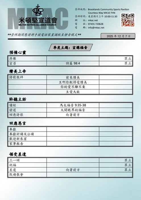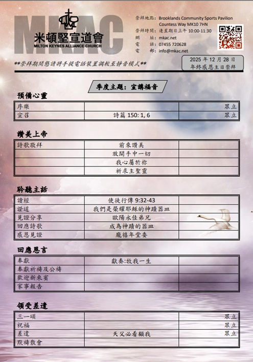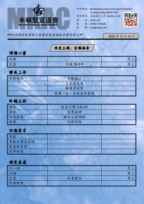 🔅清晨祈禱會 🕒每主日早上 09:15 - 09:45 📌玻璃房 ✝️因我的殿必稱為萬民禱告的殿。以賽亞書 56:7