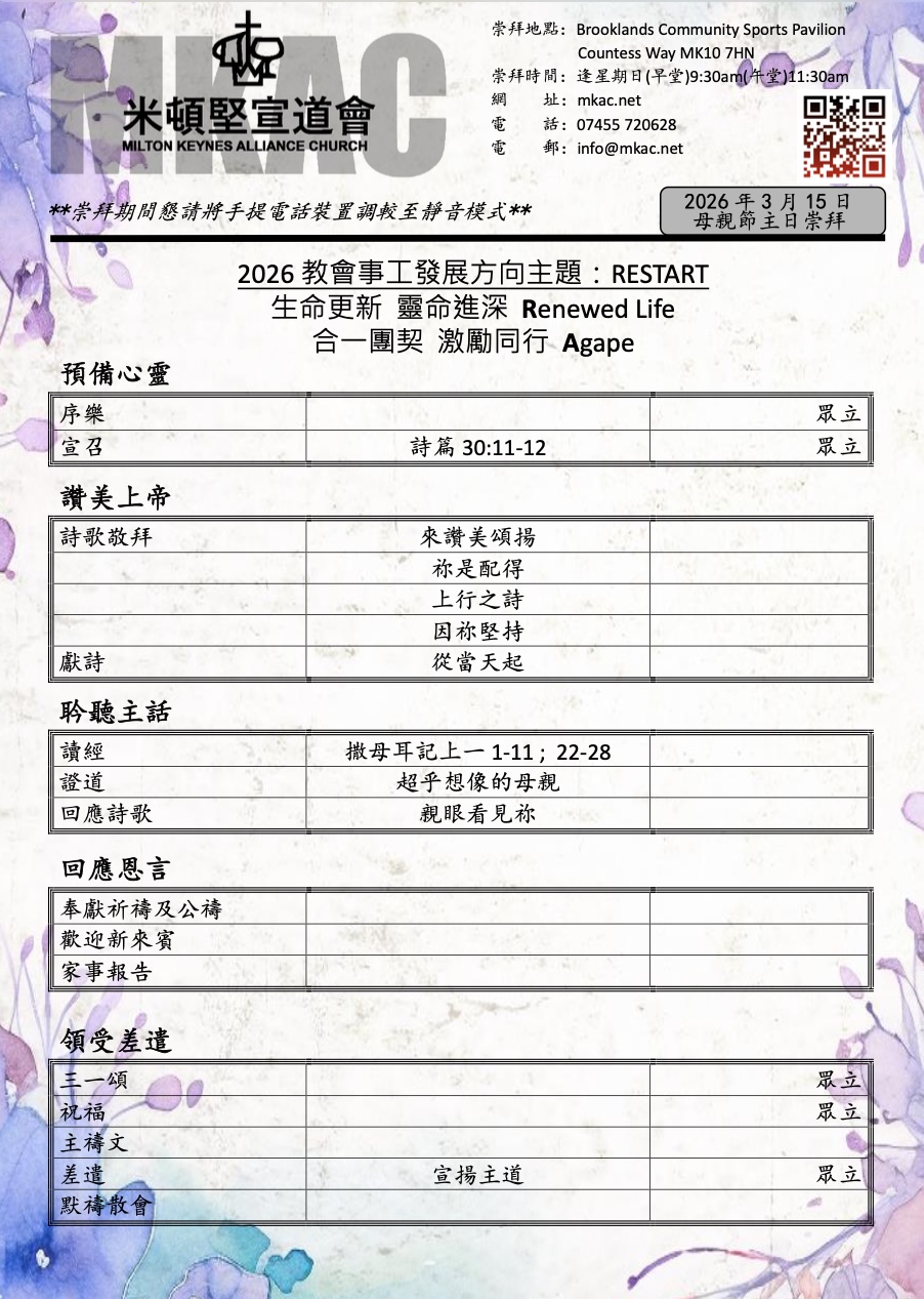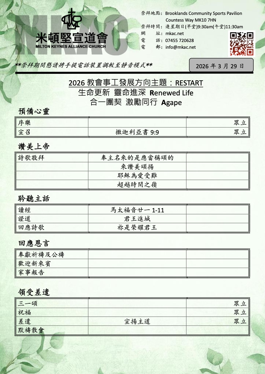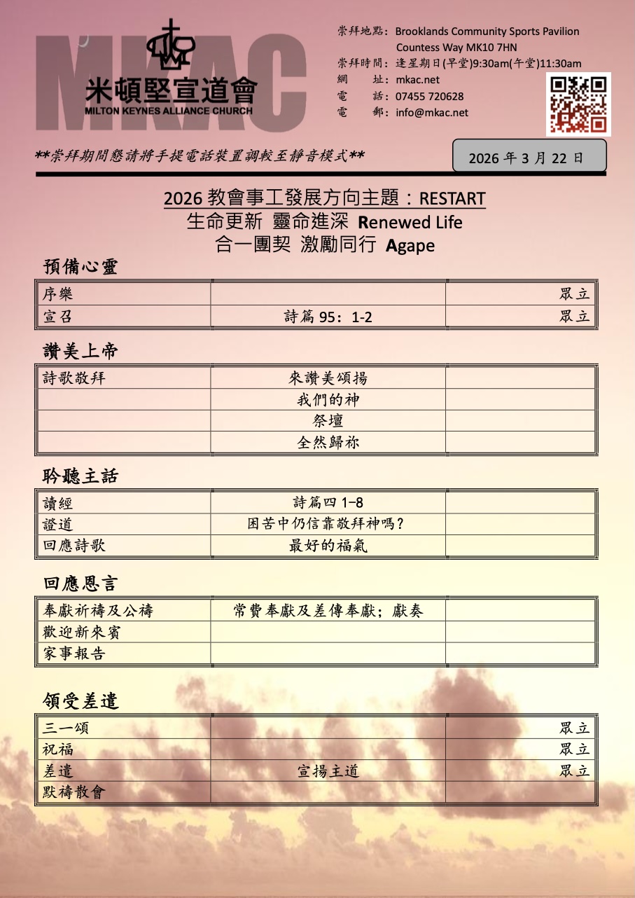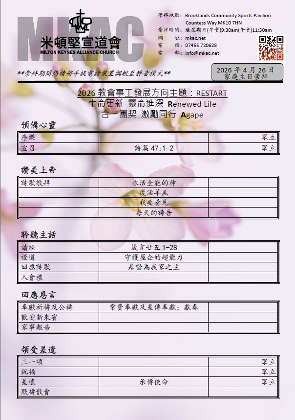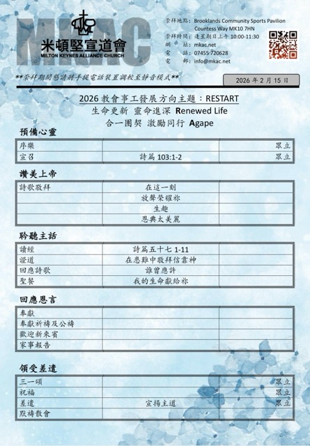 🔅清晨祈禱會 🕒每主日早上 08:45 - 09:15 📌玻璃房 ✝️因我的殿必稱為萬民禱告的殿。以賽亞書 56:7